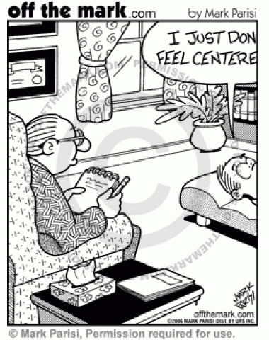 Psychiatrist's patient doesn't feel centered, and is not centered on the page.