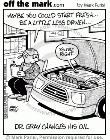 Psychologist Changes Oil Doctor changes oil by giving it therapy.