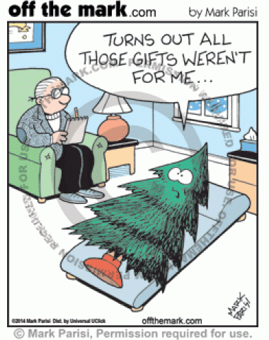 Christmas Tree Therapy A Christmas tree goes to therapy because it was disappointed that the gifts under it weren't for it.
