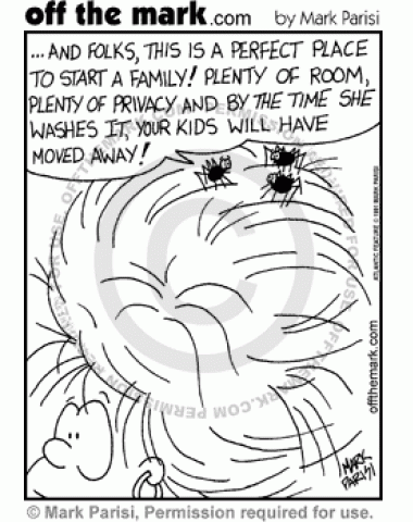 Flea Realtor Makes Sale Flea real estate agent tells flea couple woman's big head of hair is perfect place to start family because of space and privacy.