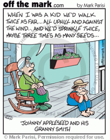 Johnny Appleseed's grandmother, Granny Smith, says her life was much harder than her grandson's.