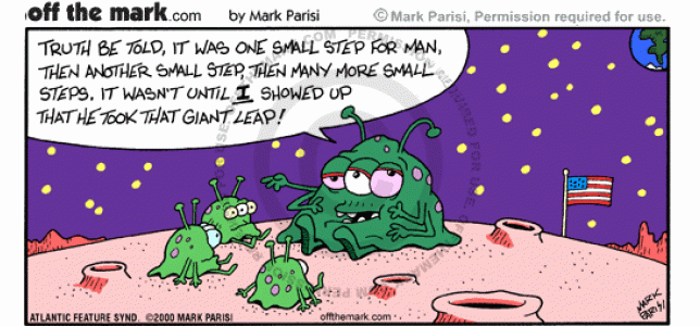 An alien on the moon says Neil Armstrong didn't take a giant leap until they met.