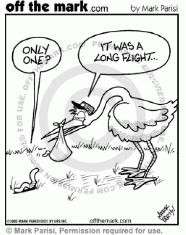 The stork delivers a single baby to a worm, because the stork was hungry.