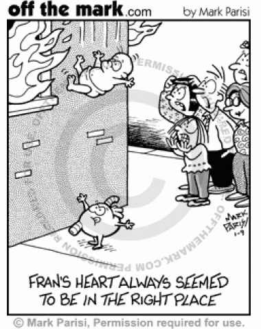 Heart in Right Place A woman's heart rescues a baby from a burning building.