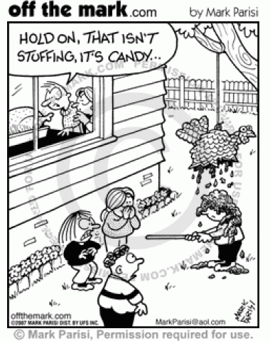 Thanksgiving Turkey Candy The Thanksgiving turkey is stuffed with candy while the turkey pinata bursts with stuffing.