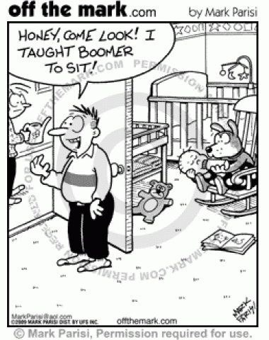 Dog Babysits Man teaches dog to babysit his baby.