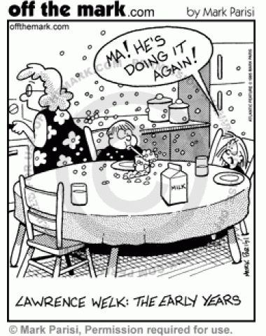 Lawrence Welk Childhood A young Lawrence Welk blows bubbles in his milk with a straw.