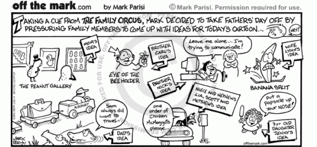 The cartoonist lets his family come up with ideas for the Fathers' Day cartoon.