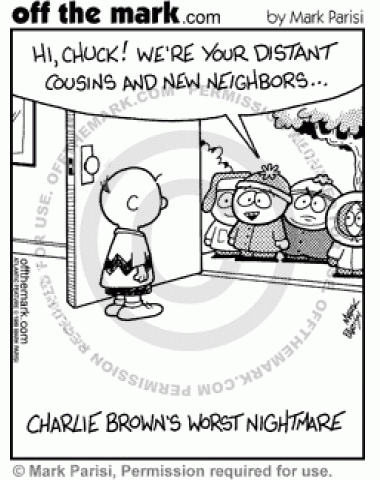 The characters from South Park move in next to Charlie Brown.