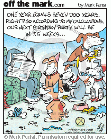 Dog Birthday Parties Dog's have birthday parties every 7.5 weeks.
