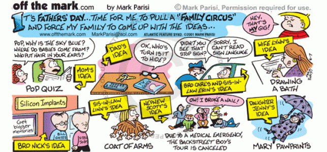 Father's Day 2001 Mark takes the day off and his family comes up with the ideas for the cartoon.