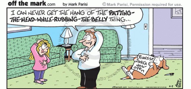 Patting Head Rubbing Belly A dog opens a practice area for rubbing your belly and patting your head at the same time.
