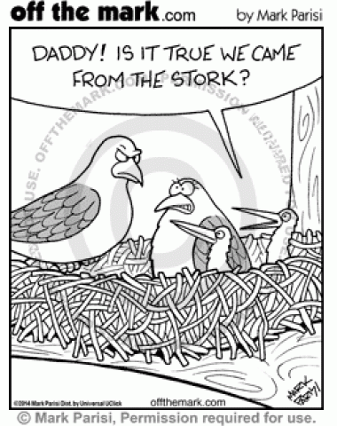 Fathered By The Stork Seagull babies want to know if they came from the stork.