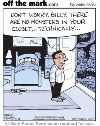Dad reassures Billy that there aren't any monsters in closet, but there are other scary things.</p>