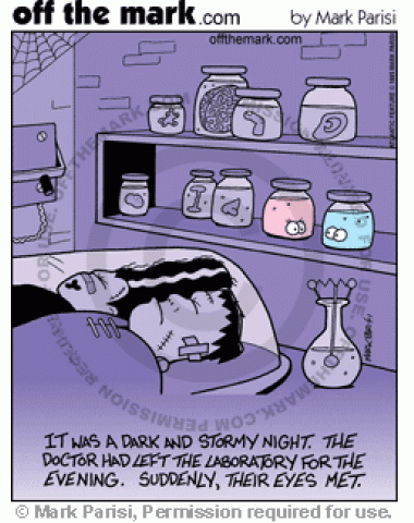 Spooky Love Frankenstein leaves the lab and two pairs of eyes meet and fall in love.