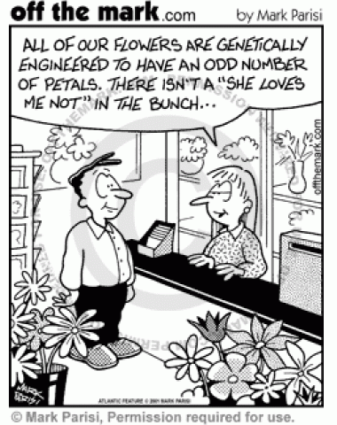 Genetically Engineered Odd Flowers All of the flowers are genetically engineered to have an odd number of petals.