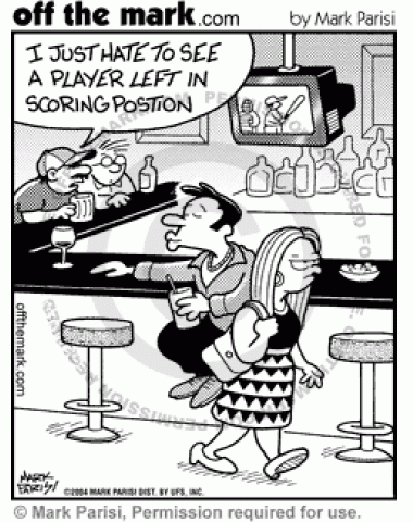 Left in Scoring Position A single guy and a baseball player are both left in scoring position.