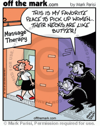 Vampire Massage Therapy Vampires likes to pick up women after they leave from massage therapy.