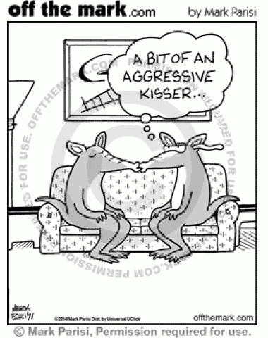 Aggressive Kisser An anteater is such an aggressive kisser that his tongue comes out his girlfriend's ear.