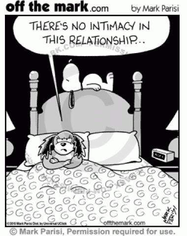 No Intimacy Snoopy Snoopy sleeps on the headboard, leaving his girlfriend without intimacy.