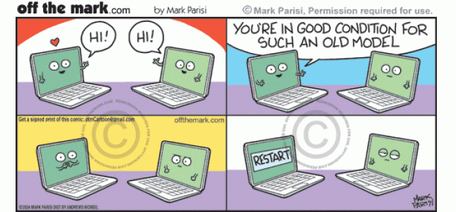 Embarrassed computer restarts after it says insulted crush is good condition for an older model.