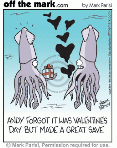 Forgetful Squid’s Inky Valentine Save Squids couple boyfriend forgot Valentine’s gift but romantic black ink hearts saved the day.