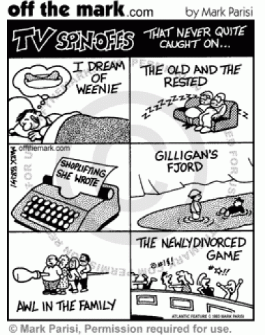 TV Spinoffs The cartoon lists TV spinoffs that never caught on.