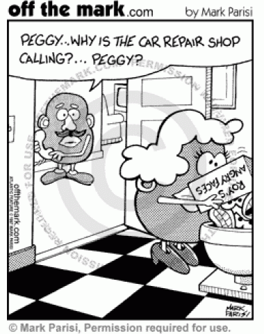 Potatohead Repair Shop Mrs. Potatohead wears boy's facial features to go to the car repair shop.