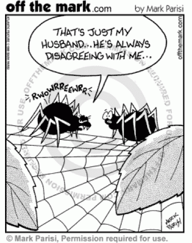 Disagreeing Spider Husband A spider has indigestion because her husband is disagreeing with her.