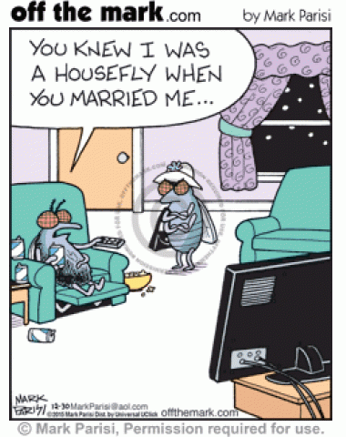 Lazy Housefly Wife is disappointed housefly never wants to go out.