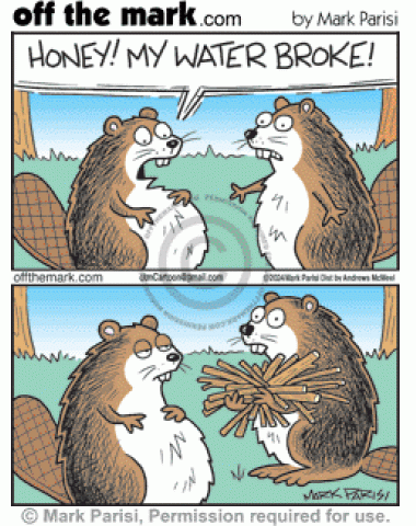 Clueless Beaver Dad’s Dam Annoys Pregnant Wife Beavers couple mom in labor says her water broke but frustrating dam building husband no help.