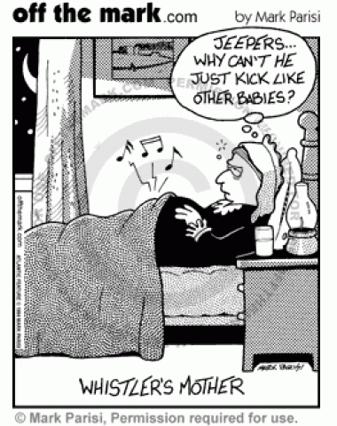 Whistler's Mother Whistler's mother wishes he would just kick like other babies.