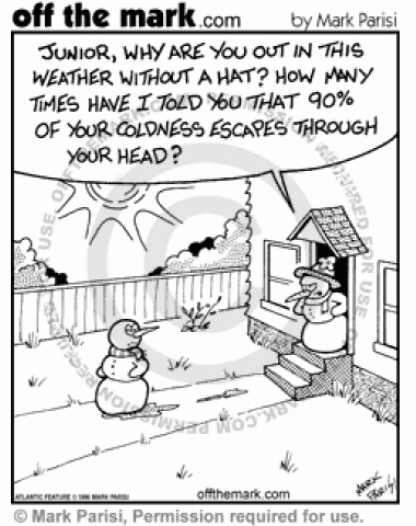 A snowman's mom nags him to wear a hat to keep his head cold.