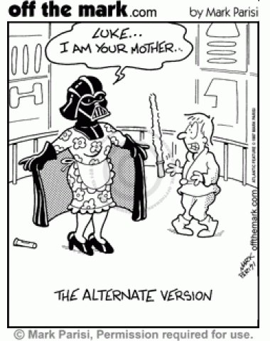 Star Wars Crossdressing In the scarier version of Star Wars, Darth Vader reveals that he's actually Luke Skywalker's mom.