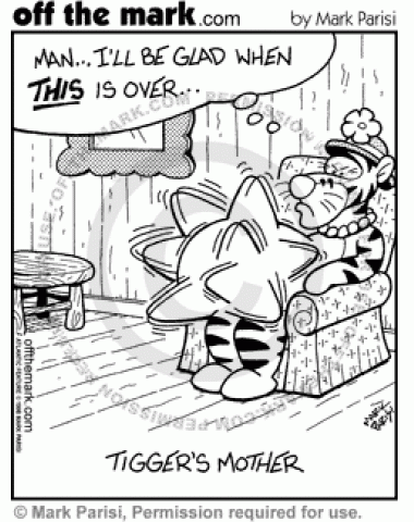 Tigger's Mother Tigger's mother dislikes being pregnant with him because he bounces around so much.