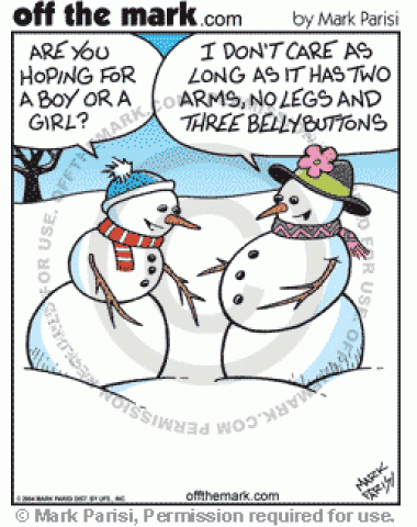 Expecting Snowwoman A snowwoman is expecting, but doesn't care if it's a boy or a girl.