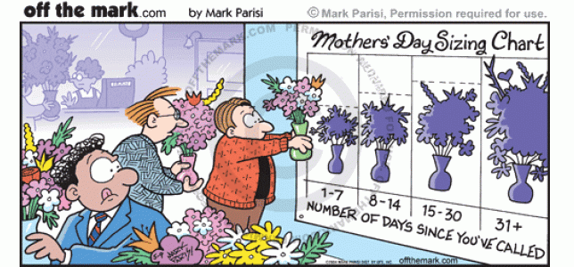 Mother's Day Sizing Chart A flower shop sells different mom bouquets depending on how long it's been since you called.