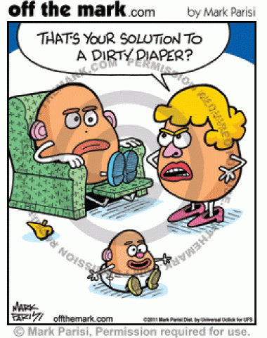 Mr. Potatohead's Diapering Mr. Potato Head takes off his nose so he can ignore his child's diaper.