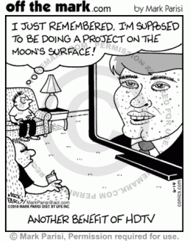 Another HDTV Benefit Man's skin on HDTV reminds boy of his moon surface project.
