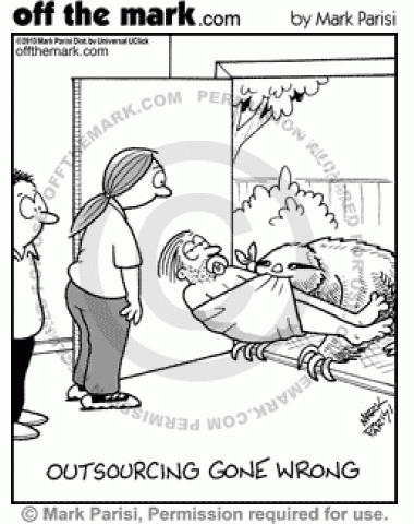 Outsourcing Gone Wrong New parents receive their son as an adult because the stork outsourced its job to a sloth.