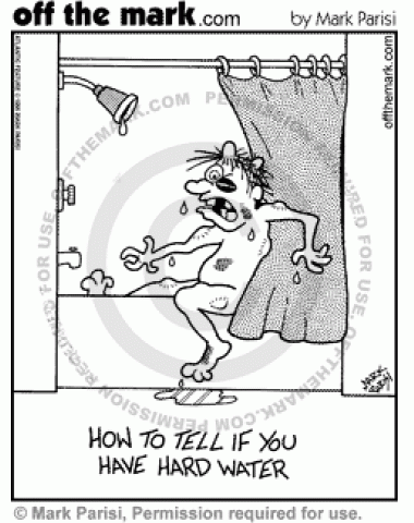 Hard Water Shower A man in a shower gets bruises from his hard water.