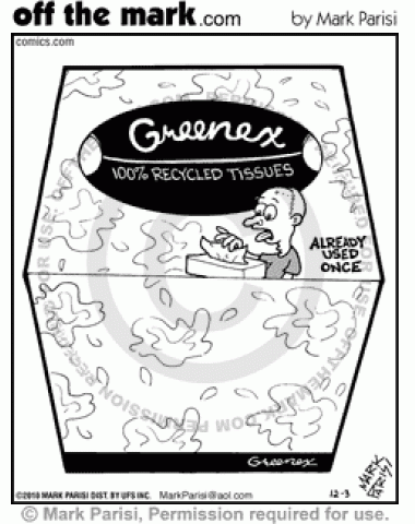 Greenex recycled tissues parodies Kleenex tissues.