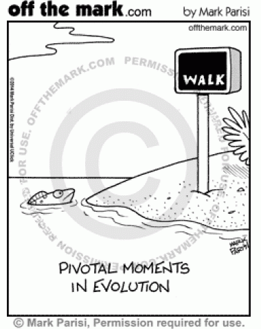 Walk Sign Commences Evolution A fish comes to the shore and sees a walk sign.