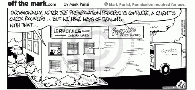 Cryogenic Butcher A cryogenics lab sends clients who can't pay to a frozen meat shop.