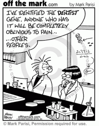 Dentist Pain Gene Scientists found the gene that make dentists immune to pain.