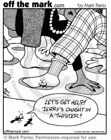Ant Twister An ant gets caught on someone's foot in a game of Twister.