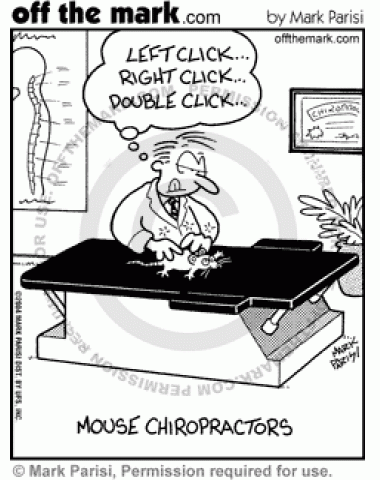 Mouse Chiropractor A mouse visits a chiropractor, who treats it as a computer mouse.