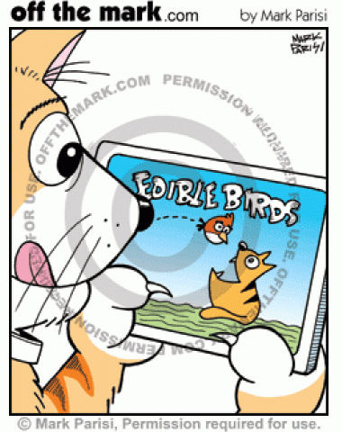 Edible Birds App Cat plays Edible Birds game instead of Angry Birds.