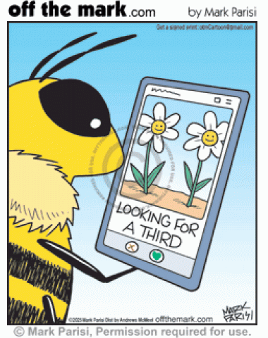 Bee Cellphone Dating App Flower Couple Looks For Sexy Pollinator Threesome Honeybee on smartphone sees flowers online dating profile looking for a third sex partner.