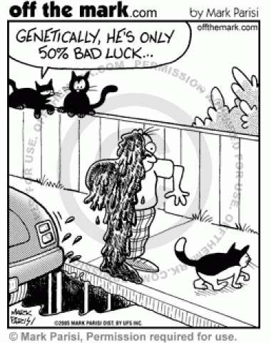 A black and white cat is only fifty percent bad luck if it crosses your path.